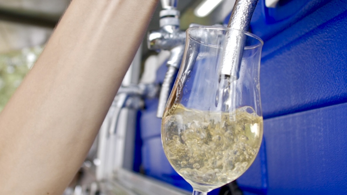 専用グラスでビールをテイスティング