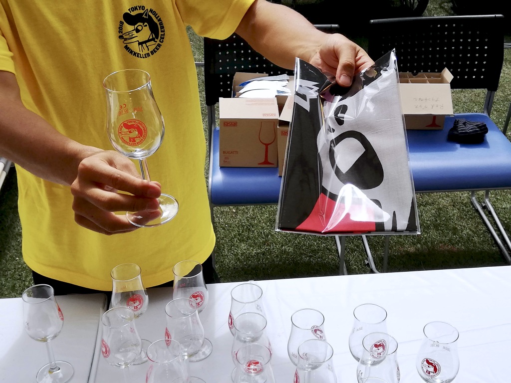 会場に入ると、受付で専用のグラスが手渡されます。このグラスを持って会場内の店舗に行くと、希望のビールを注いでもらえる仕組み。