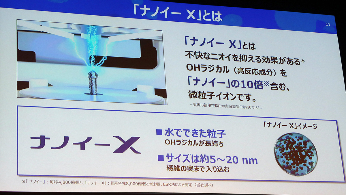 ちなみに「OHラジカル」とは高反応成分として知られる。有害物質除去につながるとして、パナソニックだけでなくシャープやダイキンが空気清浄機などで取り入れている。