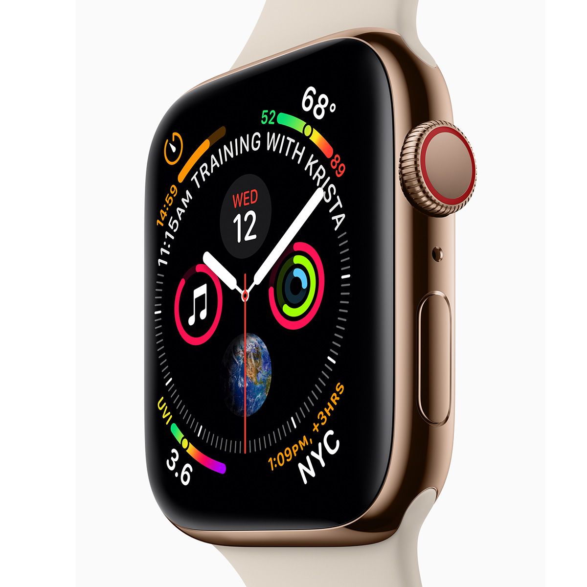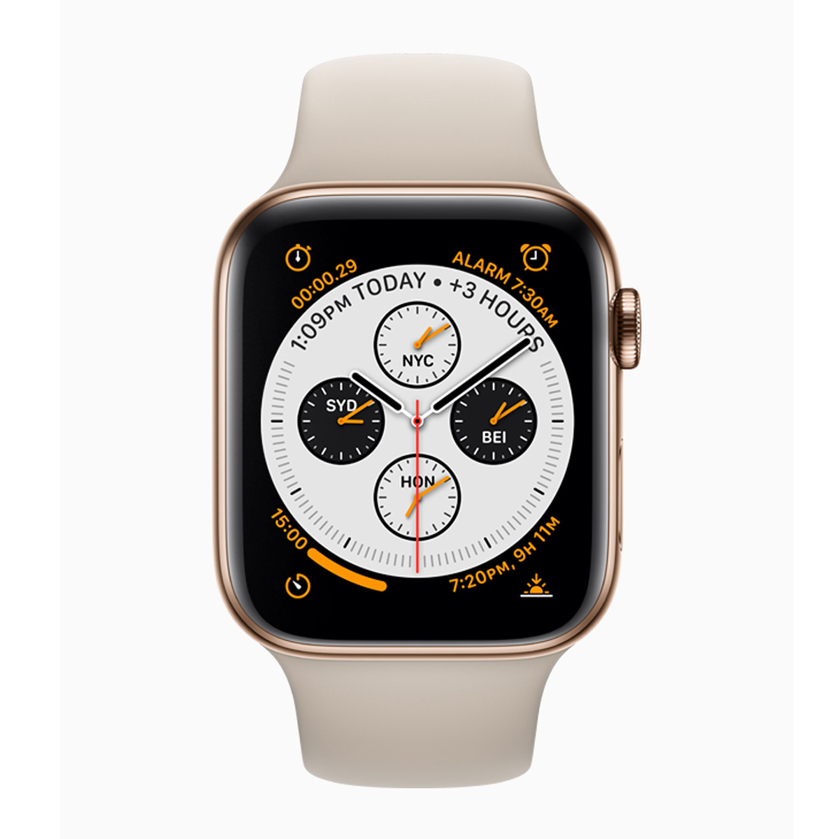 今回の発表会で先陣を切って発表されたのがApple Watch Series 4だった。デザインも全体的に見直され、ディスプレイも従来モデルより30パーセント大型化している。これにより、これまでよりも情報が集約できるインターフェイスに変更された。