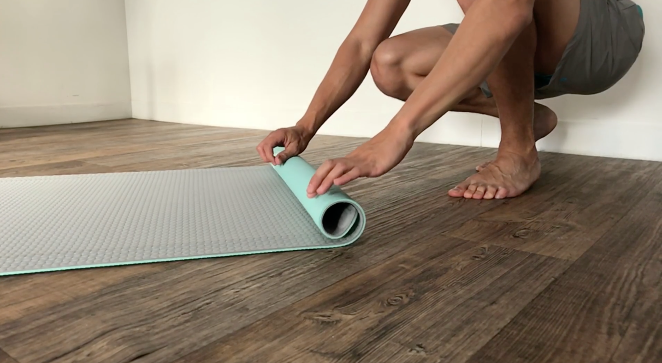 使用後は裏返しにするだけで自動的に丸まってくれるセルフローリング式で、収納の手間もかからない快適ヨガマットだ。