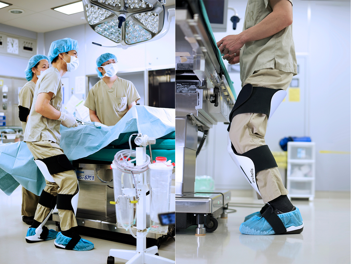 長時間の手術ともなれば、執刀医も相当な集中力とエネルギーが必要になる。千葉大学フロンティア医工学センターの川平洋准教授と、プレス金型メーカーの株式会社ニットーが開発したのは、そうした医療現場のニーズに応えるウェアラブルチェア「archelis」だ。