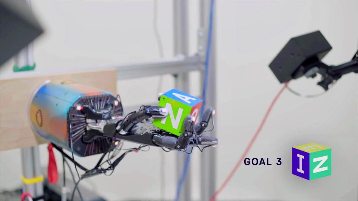 人工知能を研究する非営利団体OpenAIが開発したロボットハンドシステム「Dactyl」。手のひらにある立方体を、5本の指を器用に動かして指定した面が見えるように操作することができる。