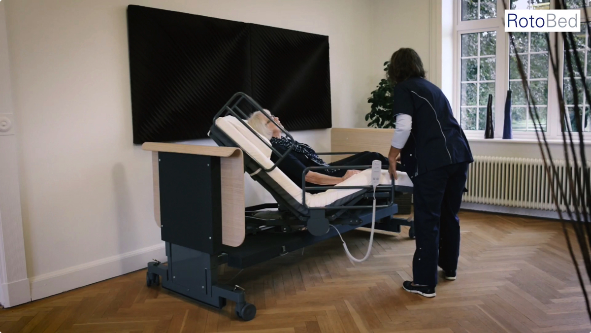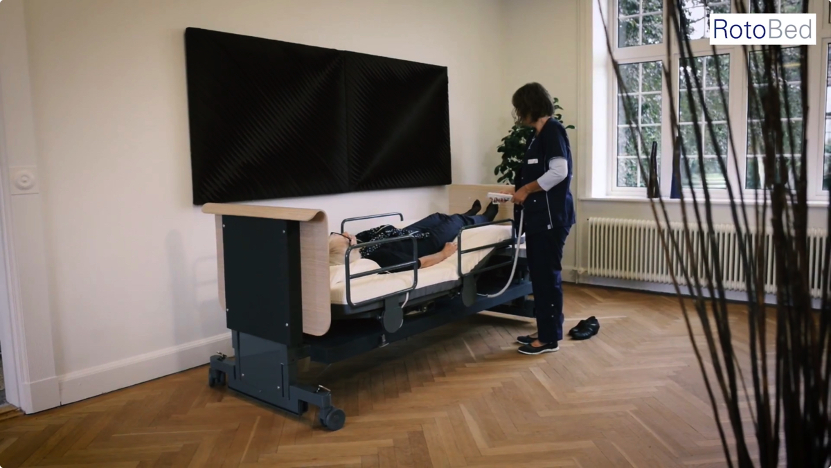 認知症を患うお年寄りや、パーキンソン病や多発性硬化症のような重病で体が不自由な人などは、ベッドに寝転んだり立ち上がったりするにも誰かの手が必要になる。そんな介護の負担を軽減するWelfare Technology(介護テック)を目指す企業が「RotoBed」だ。