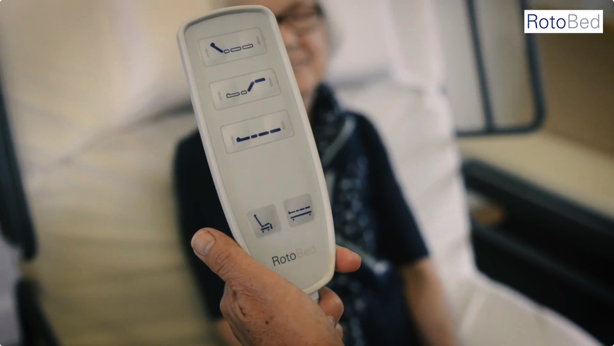 電動リクライニングベッド「RotoBed」シリーズには、フルオートの「RotoBed Free」と、セミオートの「RotoBed Care」がラインナップされている。どちらもベッドから伸びるリモコンのボタンで操作可能だ。