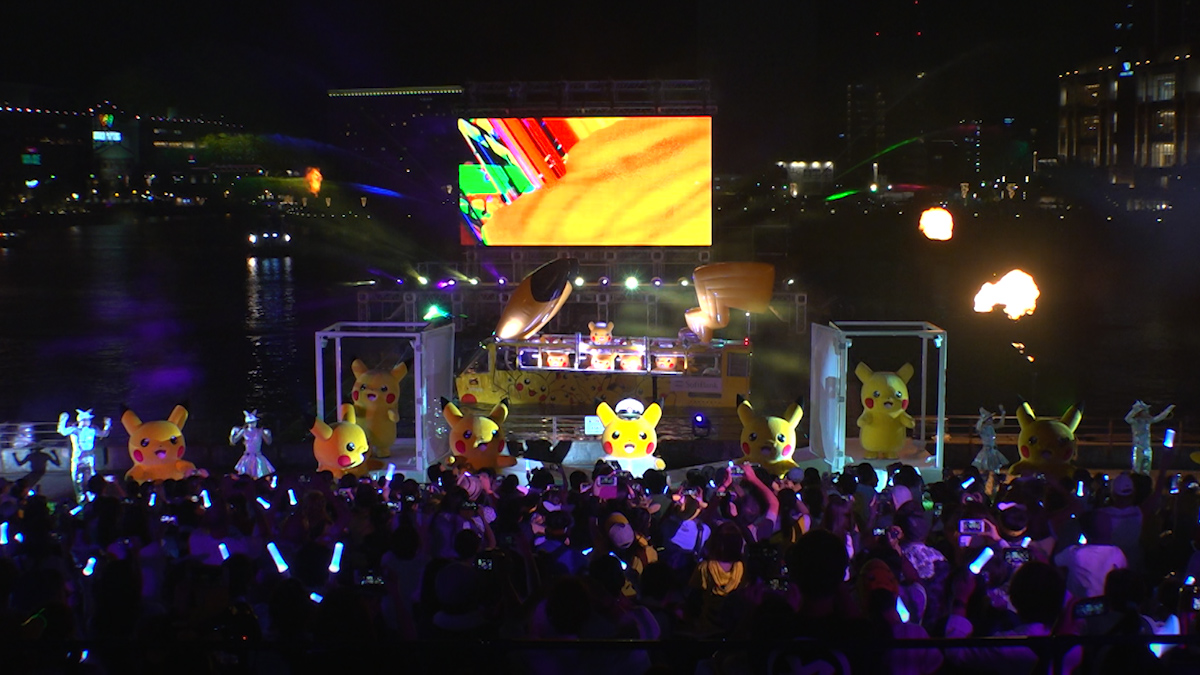 たくさんのピカチュウたちが船にのり、インスタ映え間違いなしの可愛い「ピカチュウたちの船上グリーディング!」も行われている。