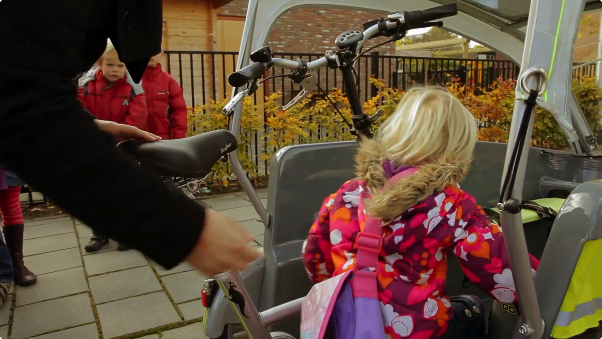 ちょっと変わった自転車を作るオランダの自転車メーカーVan Raam社が開発した、自転車に小さな客室を取り付けた子供を運ぶ自転車タクシー「GoCab」。学校や教会などの送迎で、子供たちを安全に輸送するためのソリューションとして提案されている。