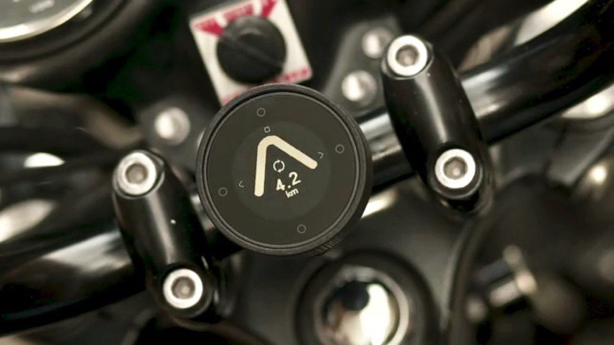 行先の方向を指す大きな矢印を使って、シンプルにわかりやすくナビゲーションしてくれるインターフェース「Beeline Moto」。バイクのハンドルバーに装着して使用可能だ。