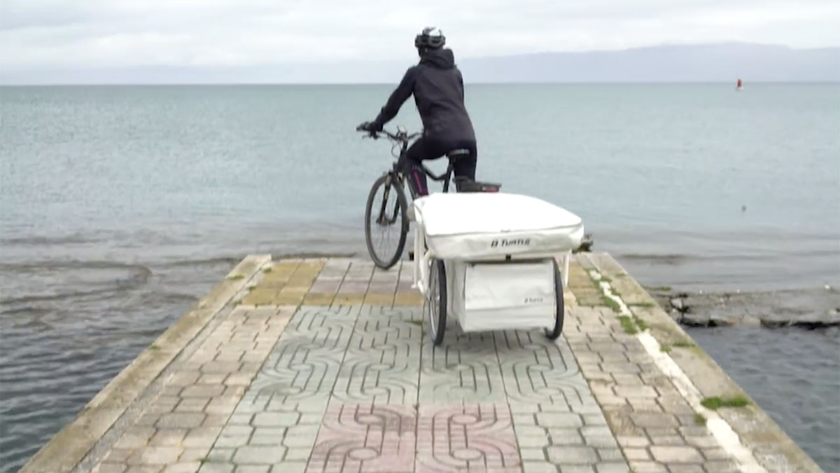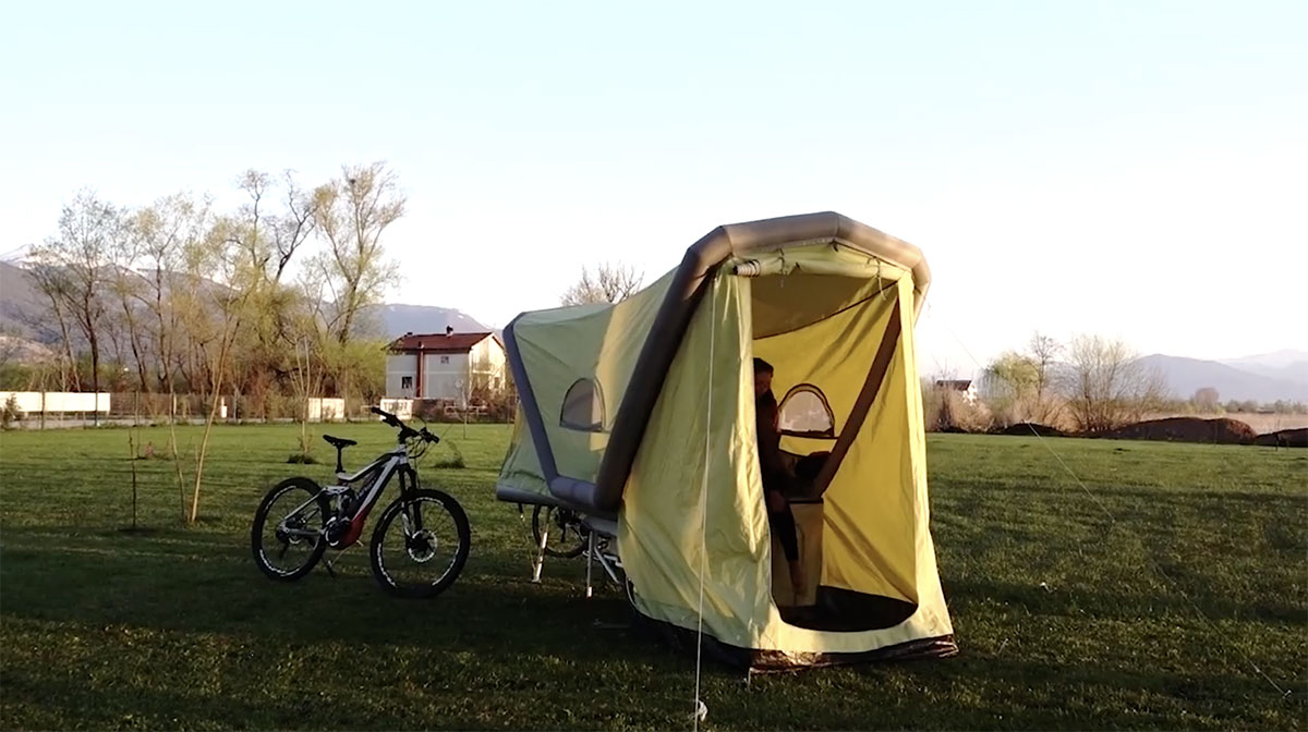 オーストラリアのGentleTent社が開発した、自転車用のキャンピングトレーラー「B-Turtle」。空気で膨らませる独自の設計により、どこでもサッと設営してくつろげるお手軽トレーラーだ。