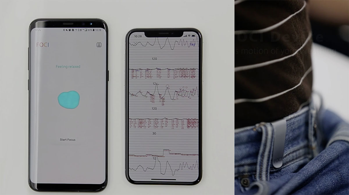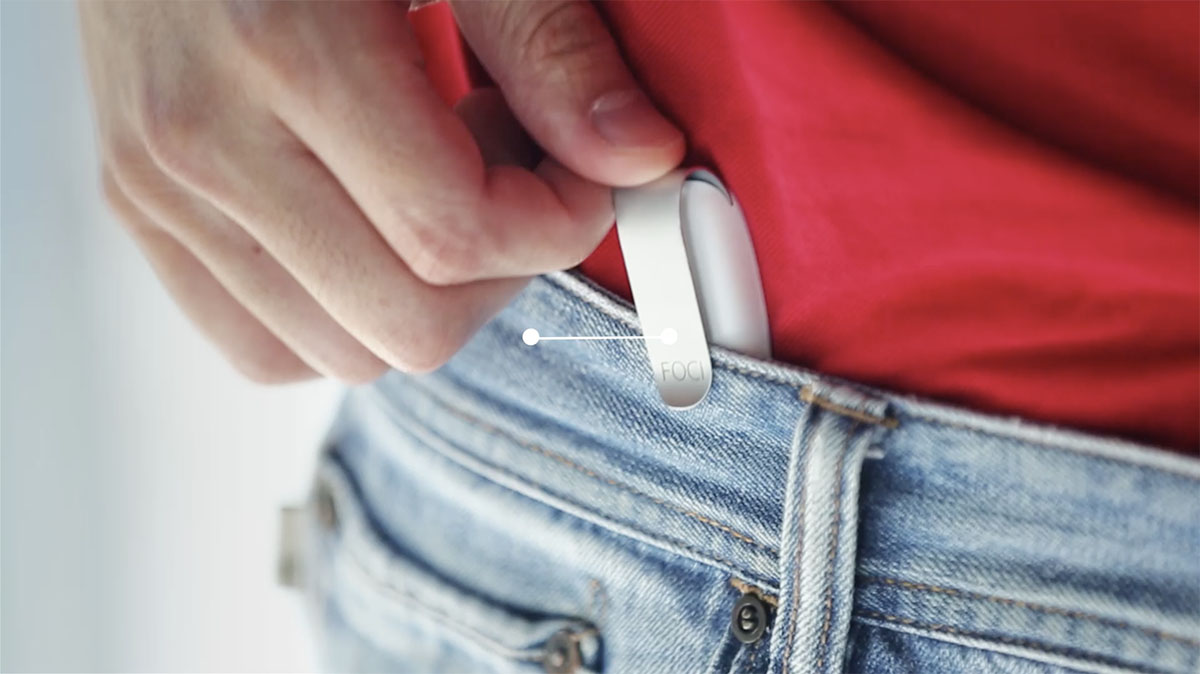 イギリスの企業が開発した、集中レベルを可視化するウェアラブルデバイス「FOCI」。クリップ型のコンパクトなデザインで、腰に身に付けておくだけで個人の意識状態を計測することが可能だ。