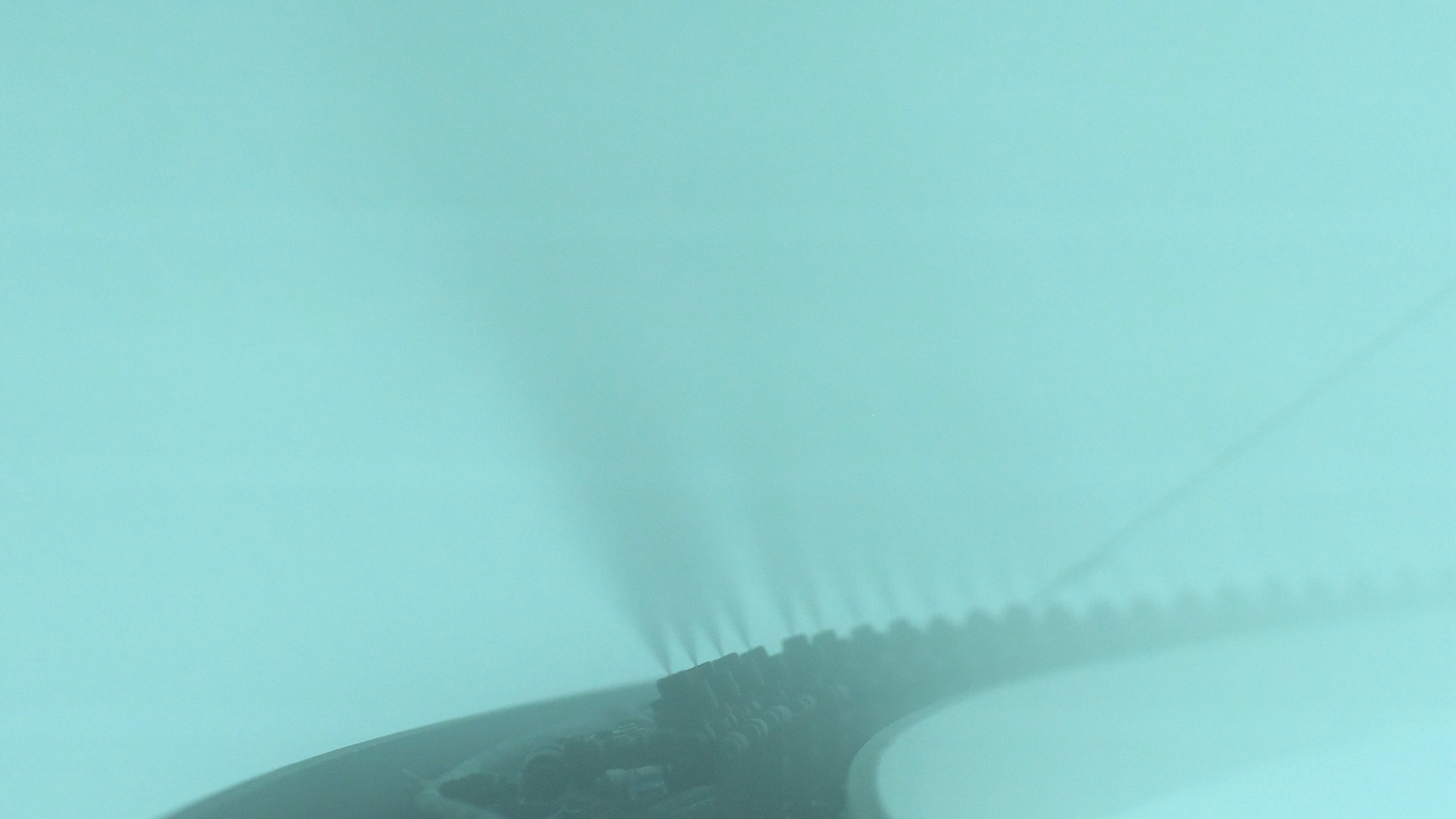 例えばエアドームを満たす霧は、空気をスクリーンとして機能させるという役割を果たしているが、霧に触れても濡れることはない。その技術は、街の暑さ対策として研究されている高圧の圧縮空気を用いて水を5μ以下に微細化する「シルキーファインミスト」という技術を応用して作られている。