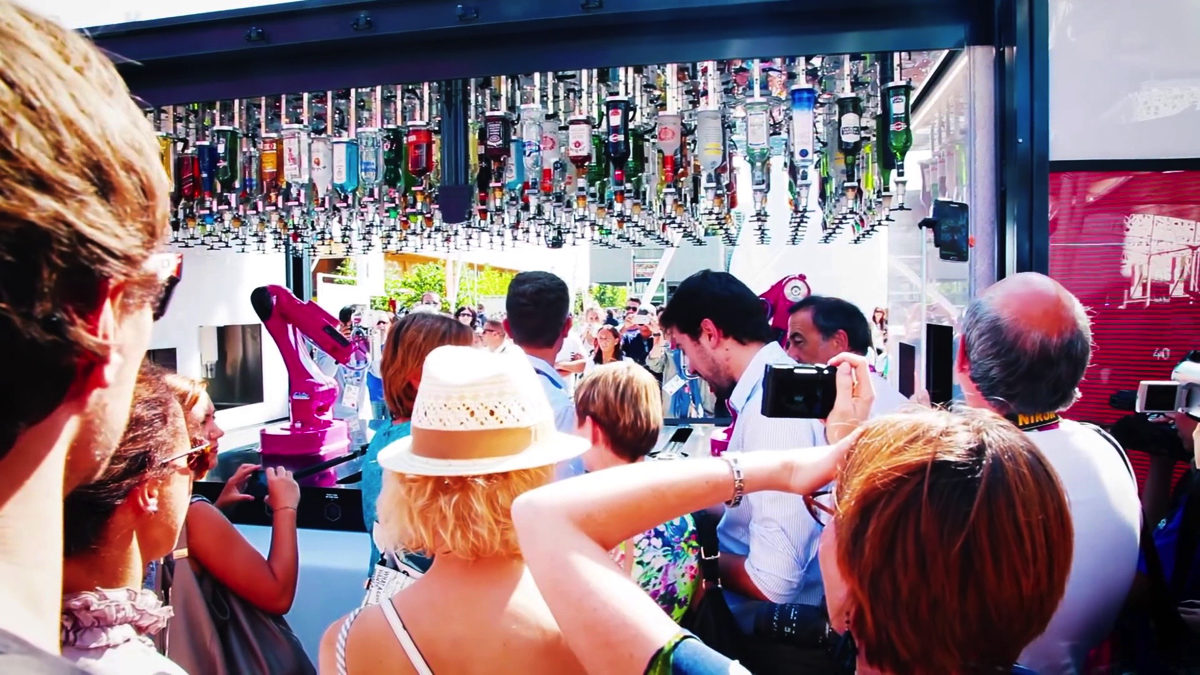 イタリアを拠点に活動するMakr Shakrが開発したロボットアームバーテンダー「Makr Shakr」。クラウドのデータベースを参照し、10の100乗(1グーゴル)種類のカクテルを作ることができるという。