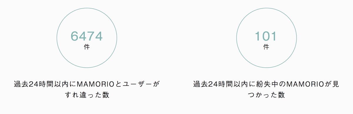 また、駅や街中にタグを検出する「MAMORIO Spot」の設置も進められている。MAMORIOは公式サイト上でタグの効果をカウントしており、過去24時間以内に6,000人を超えるユーザーがタグとすれ違い、100個以上の紛失タグが発見されているという。