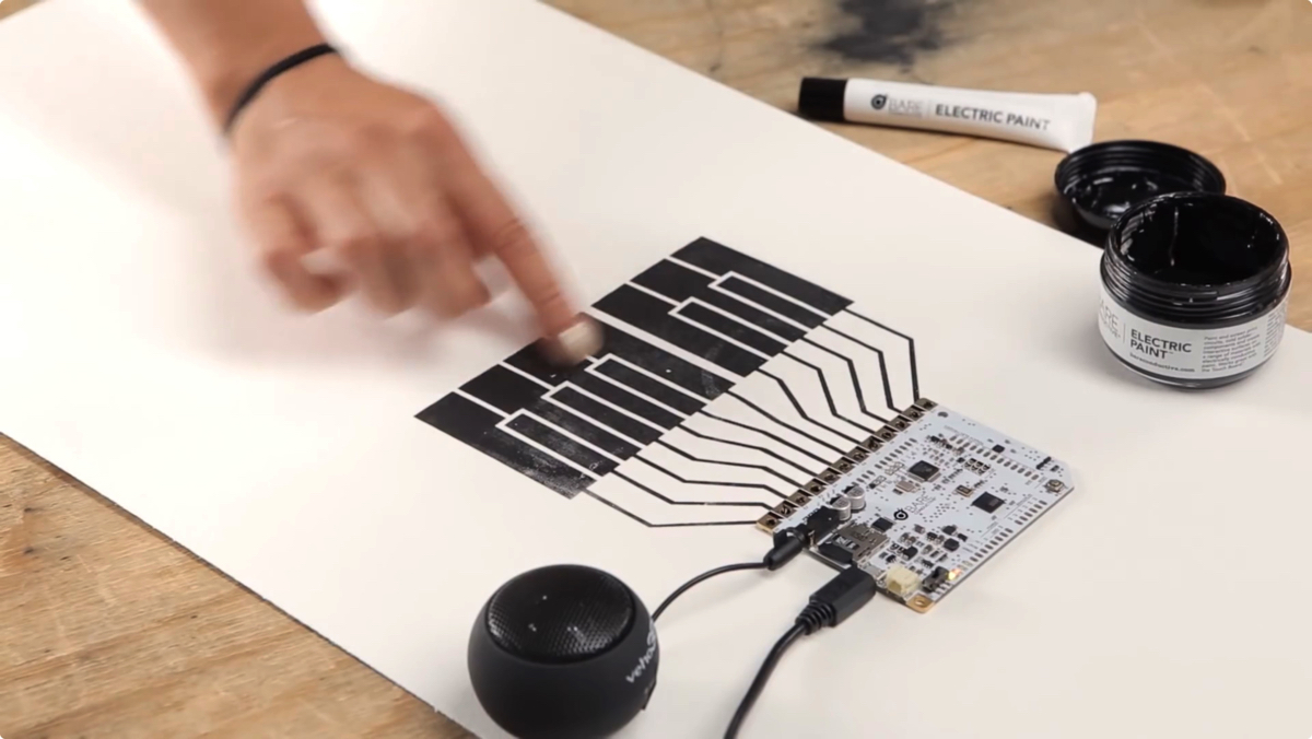 紙の上に描いたピアノの鍵盤に触れると音が出る……。お絵かきと機械工作の楽しさを組み合わせた導電インクキット「Electric Paint」をBare Conductive社が販売している。