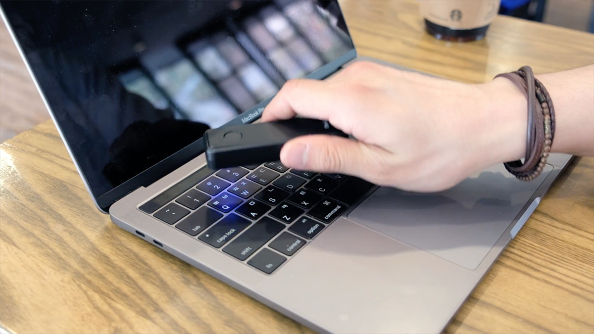 超コンパクトなのでポケットやポーチに入れいつでも携帯可能な「Cleanty」。本体はUSBケーブルで手軽に充電可能で、フル充電で約一ヶ月ほど継続して使用できる。