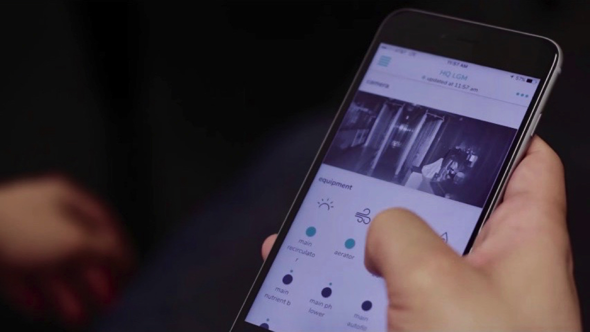 また、コンテナ自体がシステム制御されているので、スマホアプリによってリアルタイムな環境状況のチェック、空気、水、栄養分、作物の成長状態の確認や、環境に変化が生じた際に自動警告してくれる機能までついている。