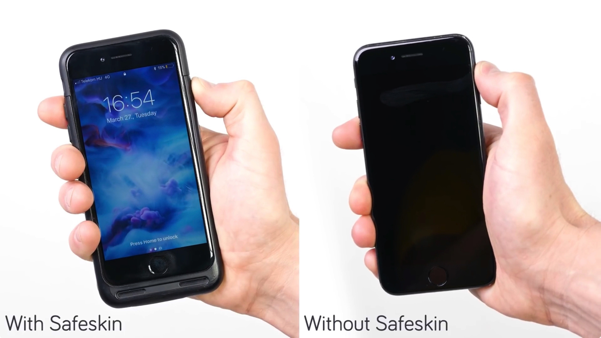 “世界で最も安全な危険防止システム”として開発された「Safeskin」。ケース本体に加えて、専用アクセサリーとアプリの組み合わせで、iPhoneをさまざまな危険から守ることができる。