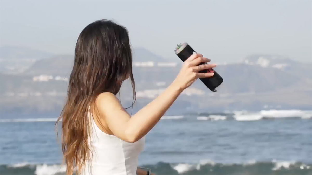 「OneUp」は、ペットボトルサイズなので超コンパクトに持ち運びが可能だ。緊急時にそのまま海に投げ込むだけで、自動で浮き輪状に膨らみ迅速な人命救助に役立てることができる。