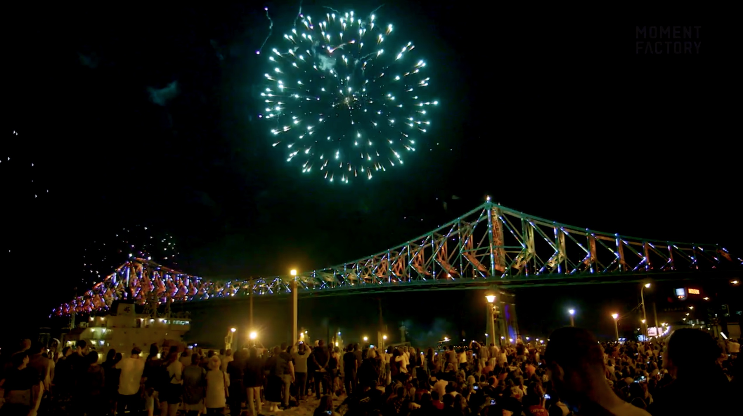 モントリオールを拠点とするエンターテイメントスタジオのMOMENT FACTORYによる「JACQUES-CARTIER BRIDGE ILLUMINATION」は、橋全体を利用した大規模なイルミネーションだ。橋は照明によって多種多様な色に輝き、さらにその構造を光のラインが流れるように移動する、幻想的なデザインが取り入れられている。