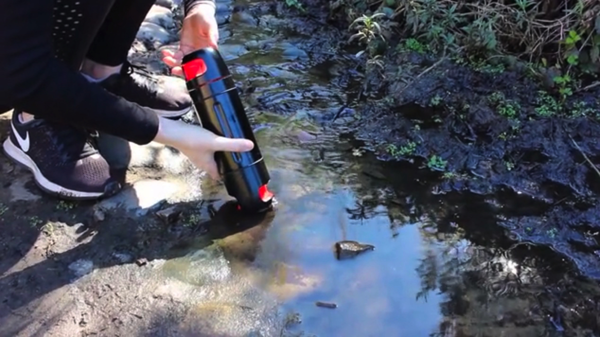 使い方は簡単で、水源に吸水口をつけ、手でポンプするだけ。ボトルの内部に吸い込まれた水分は瞬時に浄水され、飲み口からすぐに飲むことができるのは驚きだ。災害時の備えとしても重宝し、アウトドアに持って行けば、重い水のペットボトルを持って行く必要もなくなりそうだ。