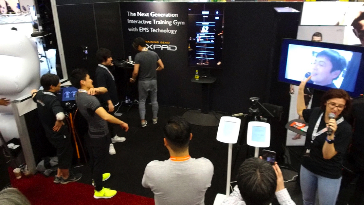 SXSW 2018のトレードショーでは、「近未来型EMSトレーニング・ジム」の体験ブースが展示された。会場ではデジタルトレーニングミラーとコントロールタワー、腕のギアで「近未来型EMSトレーニング・ジム」で3分間の体験を提供。EMSフルボディスーツは専用の肌着が必要なため、実物の展示のみとなった。