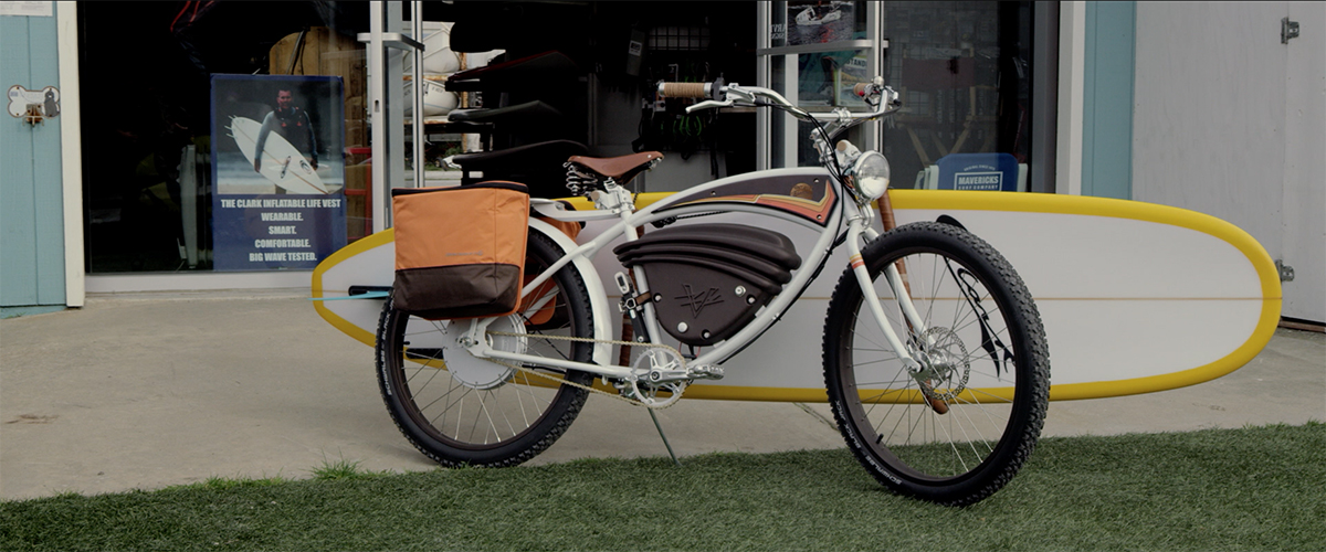 アメリカのVintage Electric社が開発した、サーファー向けにデザインされた限定生産の電動バイク「Jeff Clark Signature CRUZ」。伝説的なサーファーJeff Clark氏に敬意を表し、同氏をイメージして製作されたクールな一台となっている。
