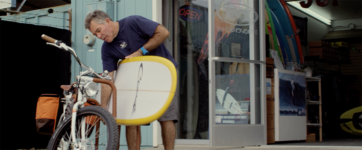 Jeff Clark氏の代名詞でもある“マーベリクス海岸”への道は時にグリッドロックが発生し、クルマがまったく進まなくなってしまうことがある。だが「JEFF CLARK SIGNATURE CRUZ」であれば、渋滞中のクルマを横目に、海岸へと走ることができるというコンセプトだ。