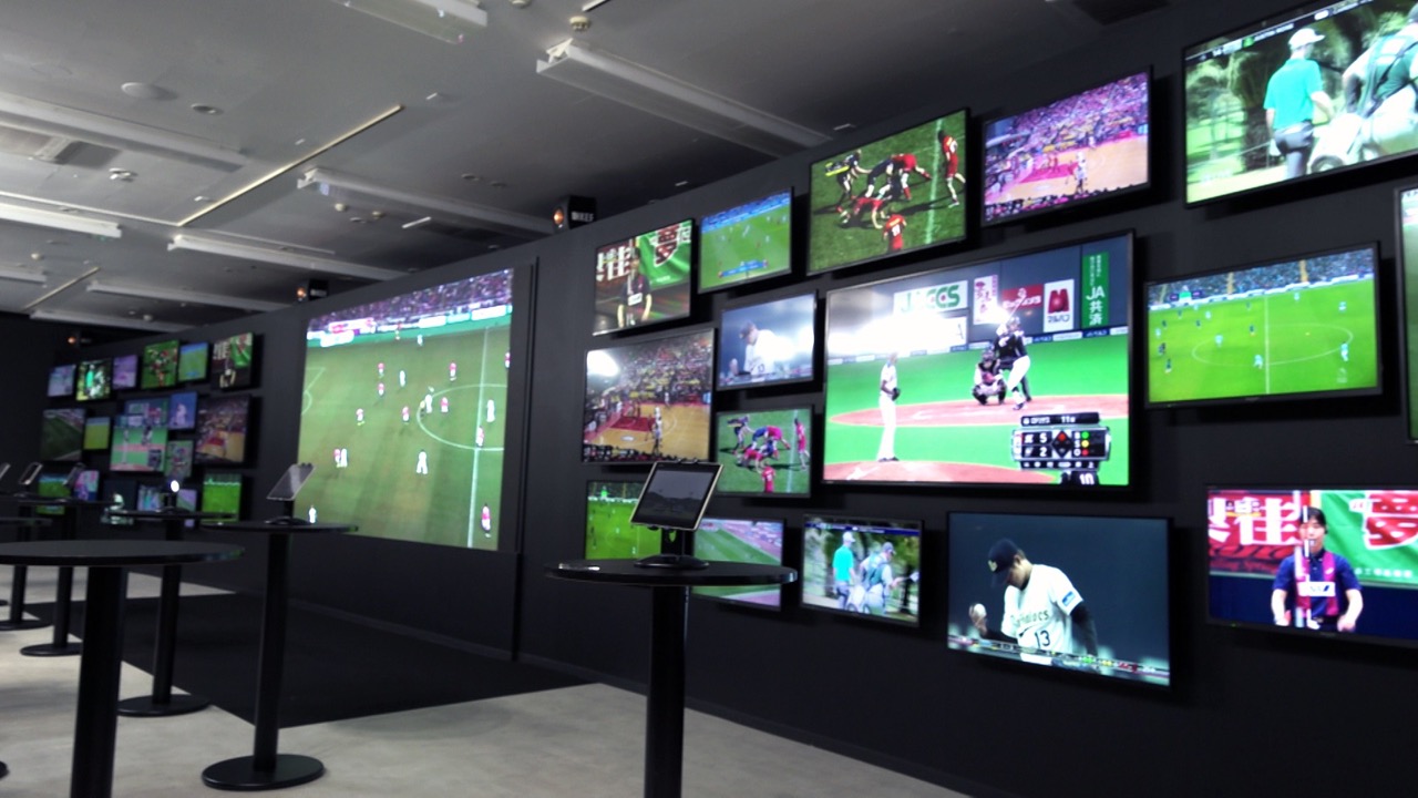 飲食が可能なラウンジには、超巨大LEDモニターをはじめ、37のモニターを設置。見る場所を変えればモニターごとに表示された様々なスポーツが楽しめる。