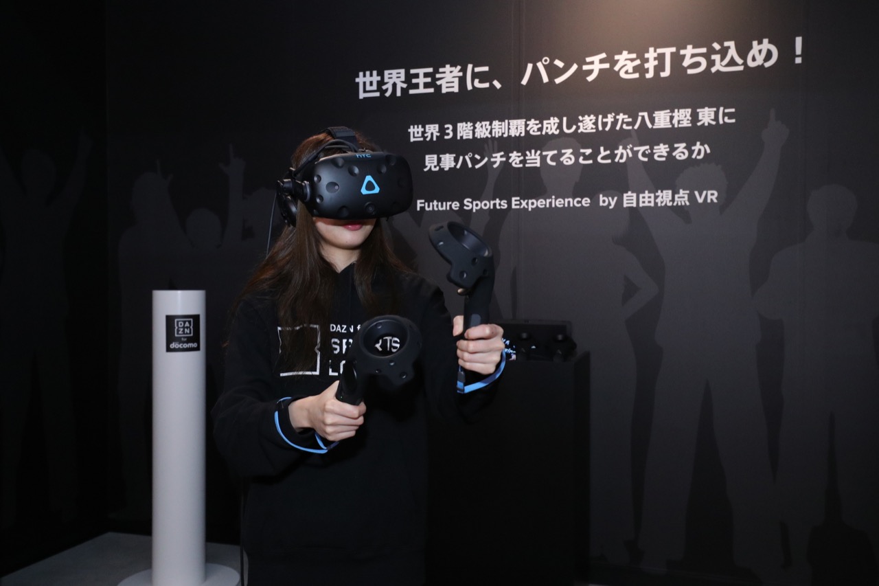 スポーツ映像を楽しむだけでなく、身体を動かしてスポーツを体感できるアクテビティも設置されている。VRゴーグルをつけて、世界3階級制覇をはたした王者八重樫東氏とのボクシング対決や、元メジャーリーガー川上憲伸氏の投球を仮想体験など、臨場感あふれるVR体験でスポーツをより身近に楽しく感じることができるだろう。