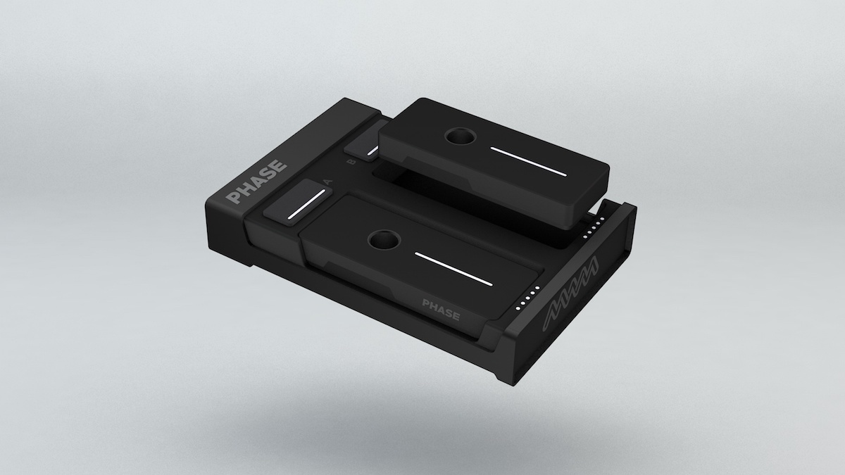 スピンドルに設置するリモートと、オーディオシステムに接続するレシーバーの2つの機器で動作する「Phase」。リモートはタイムコードレコードの回転をセンサーで読み取り、その情報をワイヤレスでレシーバーに送信。そして、好きなトラックでのDJプレイが楽しめるという仕組みだ。なお、レシーバーではリモートの充電もできる。