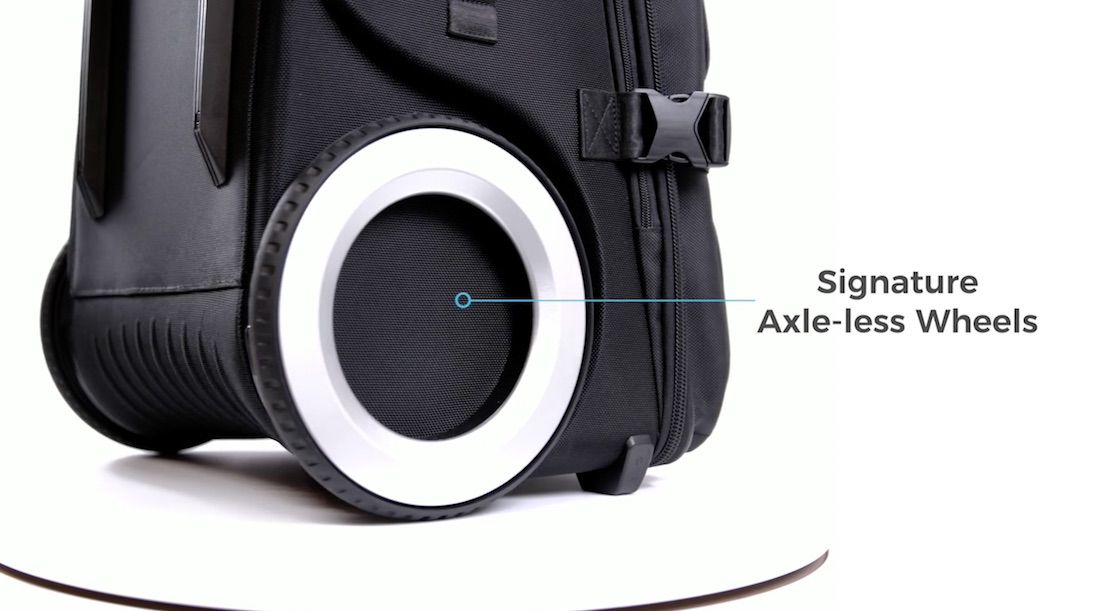 もともとこのスーツケースは、従来のスーツケースに装着されたキャスターがでこぼこみちや雪道、砂地で持ち運びにくく、壊れやすく、さらに内部容量も制限してしまうという不満を解消するために開発された。さらに大きなホイールは、スーツケースの倒れにくさにも貢献しているそうだ。
