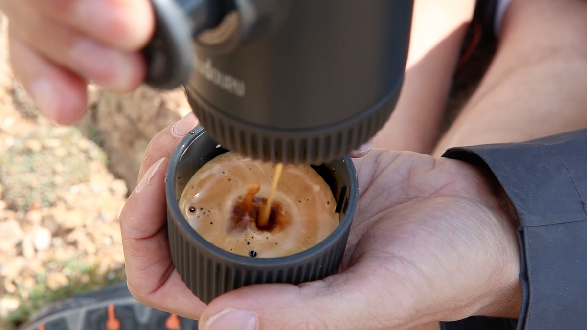 電気や火を使わずに、淹れたてのエスプレッソを味わえる「nanopresso」。コーヒー粉を本体上部のフィルターに、お湯を本体下部のタンクに注げば準備OK。