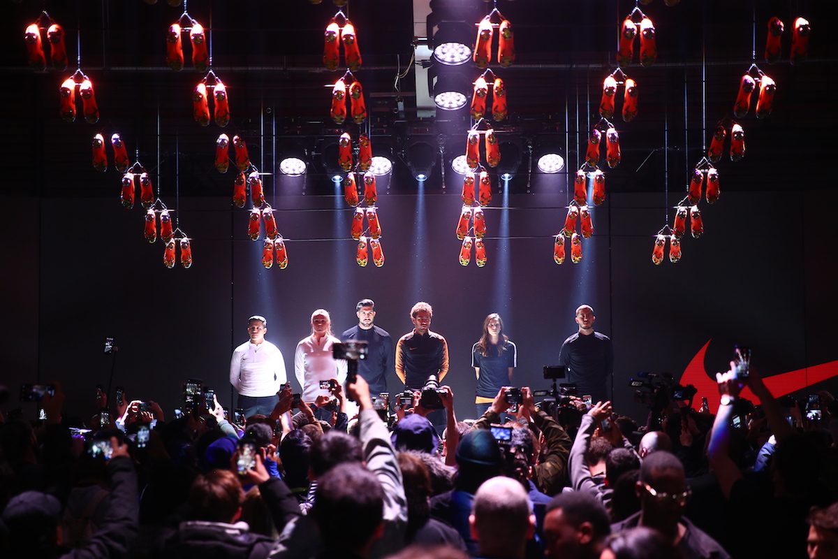 特設ステージが組まれた発表会場では、スモークや照明と共に頭上から何足もの新マーキュリアルが降りてくるといド派手な演出の中、その間をネイマールや他の選手たちがピッチに入るようなフォーメーションでステージに上がった。初めて新マーキュリアルを試したネイマールは、まだ開発段階だったシューズを履いた瞬間に、「今ずぐ外に出て走ってみてもいいか」と担当者に尋ねたという。