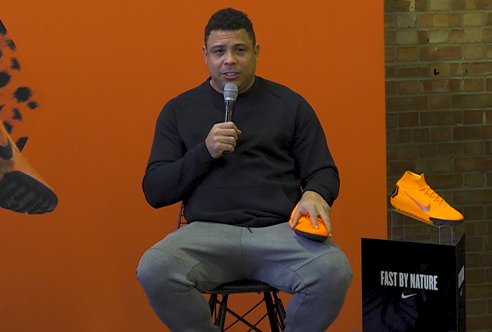 同日昼には、1998年に初めて「マーキュリアル」を履いた元ブラジル代表のロナウド氏も登壇。フットサル用のマーキュリアルの良さや、ナイキのテクノロジーの進化について語った。