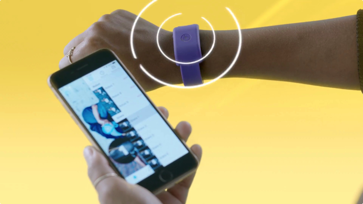 「SoundMoovz」はスマートフォンのアプリと連携して使用するウェアラブルデバイスだ。アプリから好きな音を設定し、腕や足に装着。LEDと加速度センサーを搭載しており、動きを検知すると設定した音が鳴るという仕組みだ。