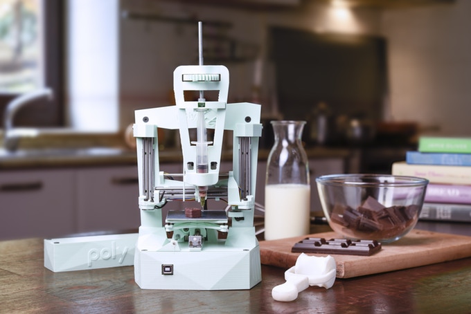 通常の3Dプリント用ツールヘッド以外に、ツールホルダー「Poly Joint」、チョコレート押出キット「Poly Ciok」、レーザー刻印キット「Poly Engraver」が用意されている。「Poly Ciok」では、チョコレート細工を作るなどユニークな楽しみ方ができる。