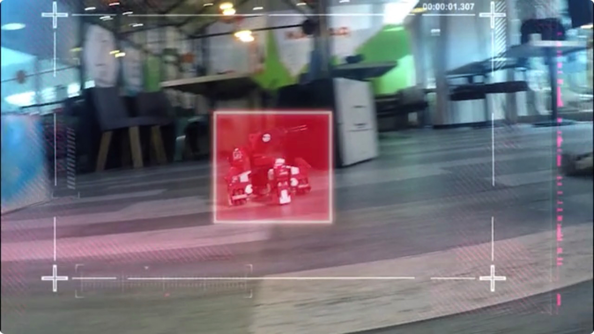 さらにFPVモードに切り替えれば、ロボットに搭載のカメラの映像をスマホで見ながら、ロボットの目線で迫力のFPSバトルを楽しめるようになっている。
