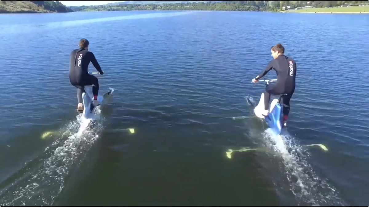 湖、川、海とあらゆる場面でとてもユニークなサイクリングを体験できる水上自転車は、電動モーターと最先端の水中翼船技術を駆使することで実現している。自転車機構にプロペラと水中翼を搭載することで、通常の自転車のペダルを漕ぐように水上を楽しくサイクリングできるのだ。