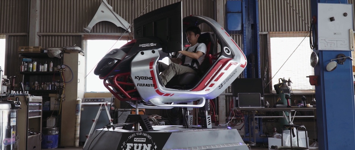 そして「KYOSHO RC RIDE-ON SYSTEM 4D EXPERIENCE」の大きな特長は、モニターに送られてくる映像はすべてバーチャルではなく、「リアル」だということだ。レーシングゲームのようなスピード感を実現しながらも、ライブで実際に走行・飛行している映像を体感することが可能。バーチャルにはないリアルを全身で楽しめるだろう。