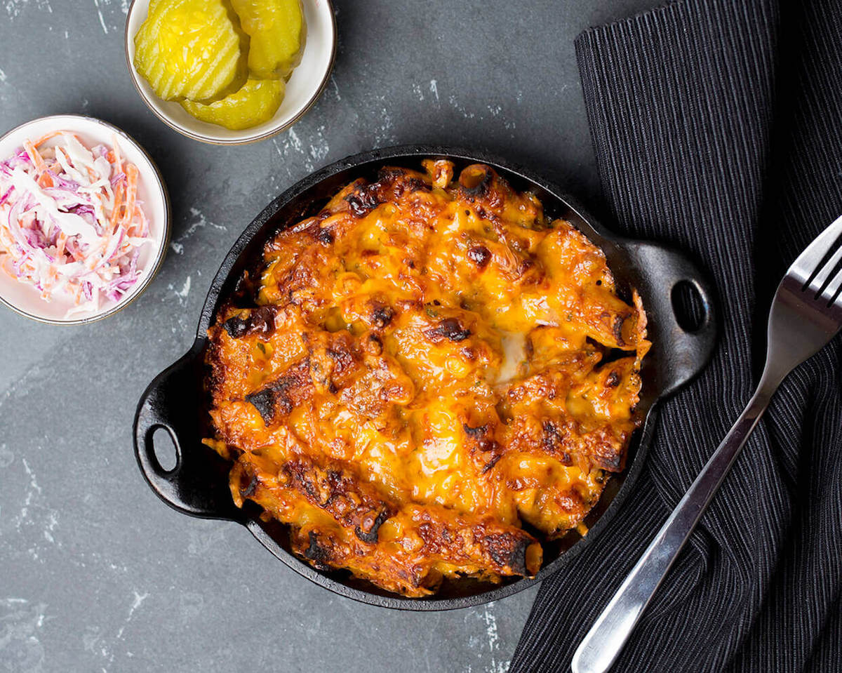ピザのメニューでよく見るBBQ Chicken Pizzaをパスタにしたメニュー。片づけの中で最も避けたいものの一つグリルを汚すことなく、庭でBBQしたような味を楽しむことができる。鶏のむね肉にBBQソース、焦がしトウモロコシとじっくり炒めた玉ねぎ、スモークドチェダーチーズを混ぜた本格派。自分で作ろうと思ったら、手間がかかりすぎてあきらめたくなる手のこみようだ。