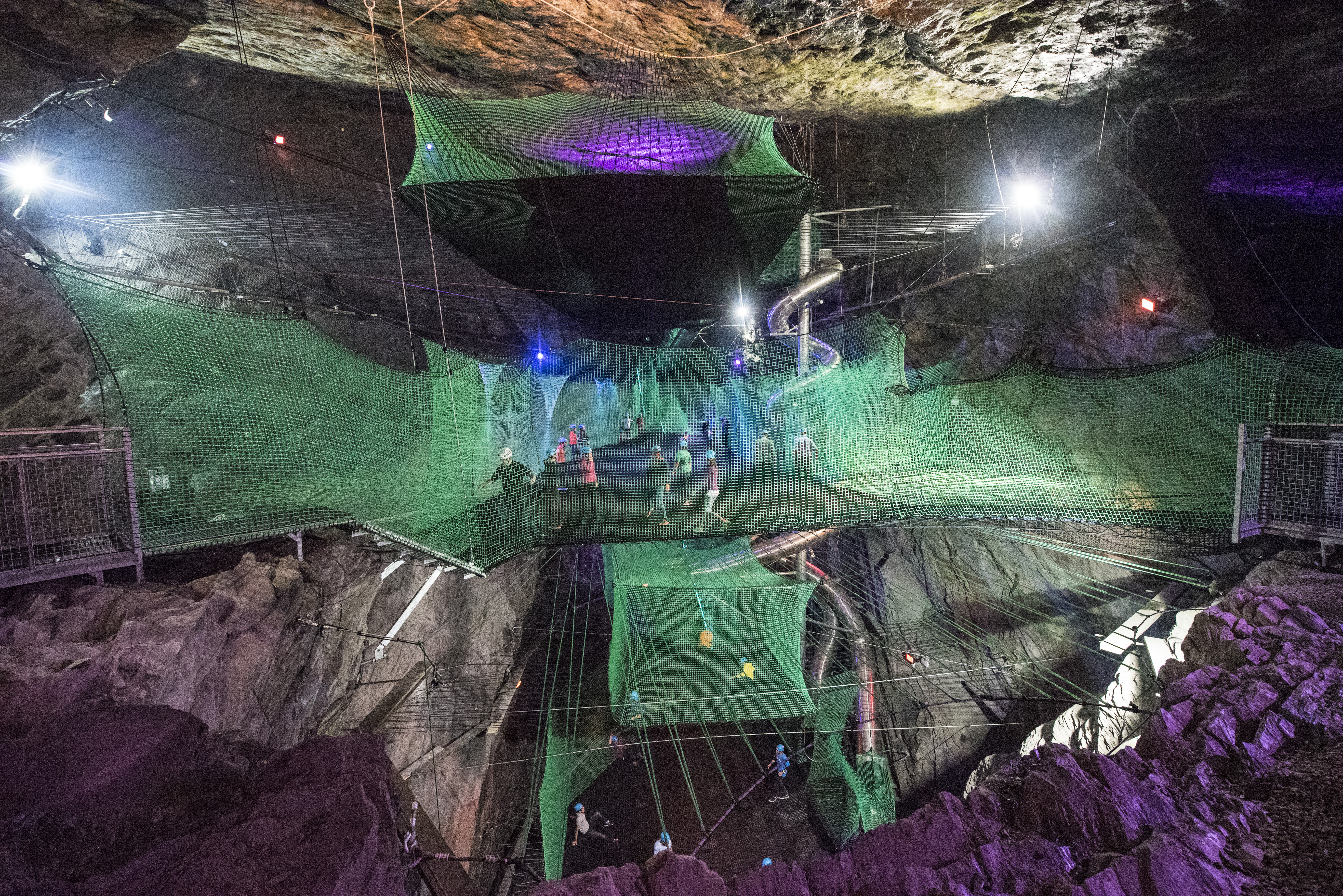 「Bounce Below」が設置されている場所は、ビクトリア朝時代からの長い歴史を持つ「Llechwedd Slate Caverns」内。かつては鉱山として栄えたが、1960年代には需要が急激に減少してしまう。