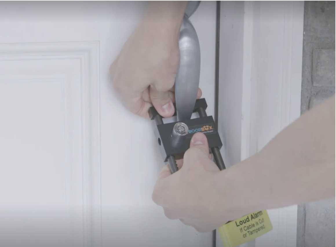盗人が扉と繋がっているロープを切ったり、外そうとすると120デシベルを越える大音量が鳴り響く。