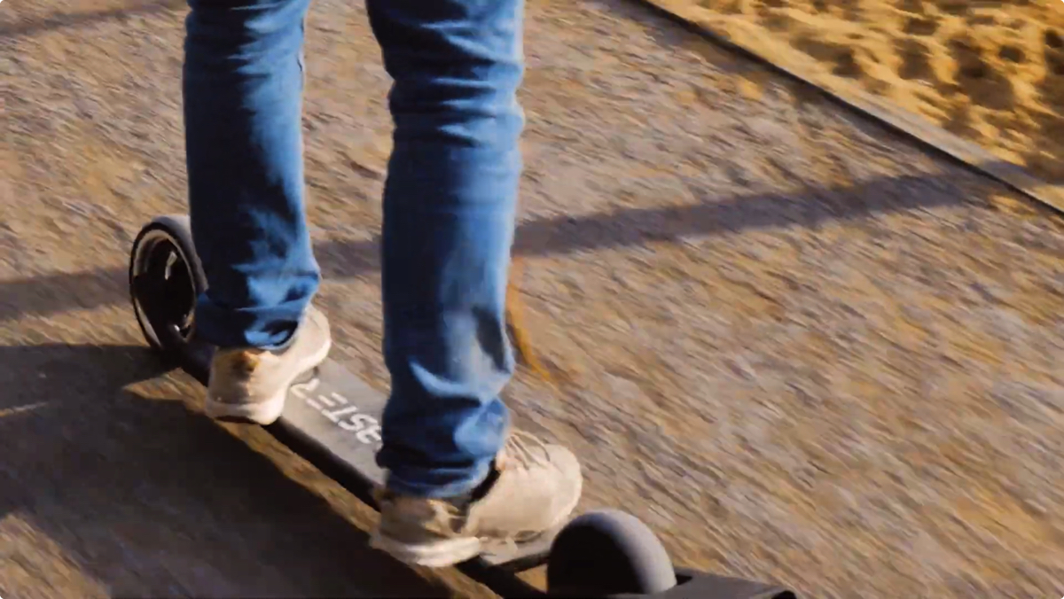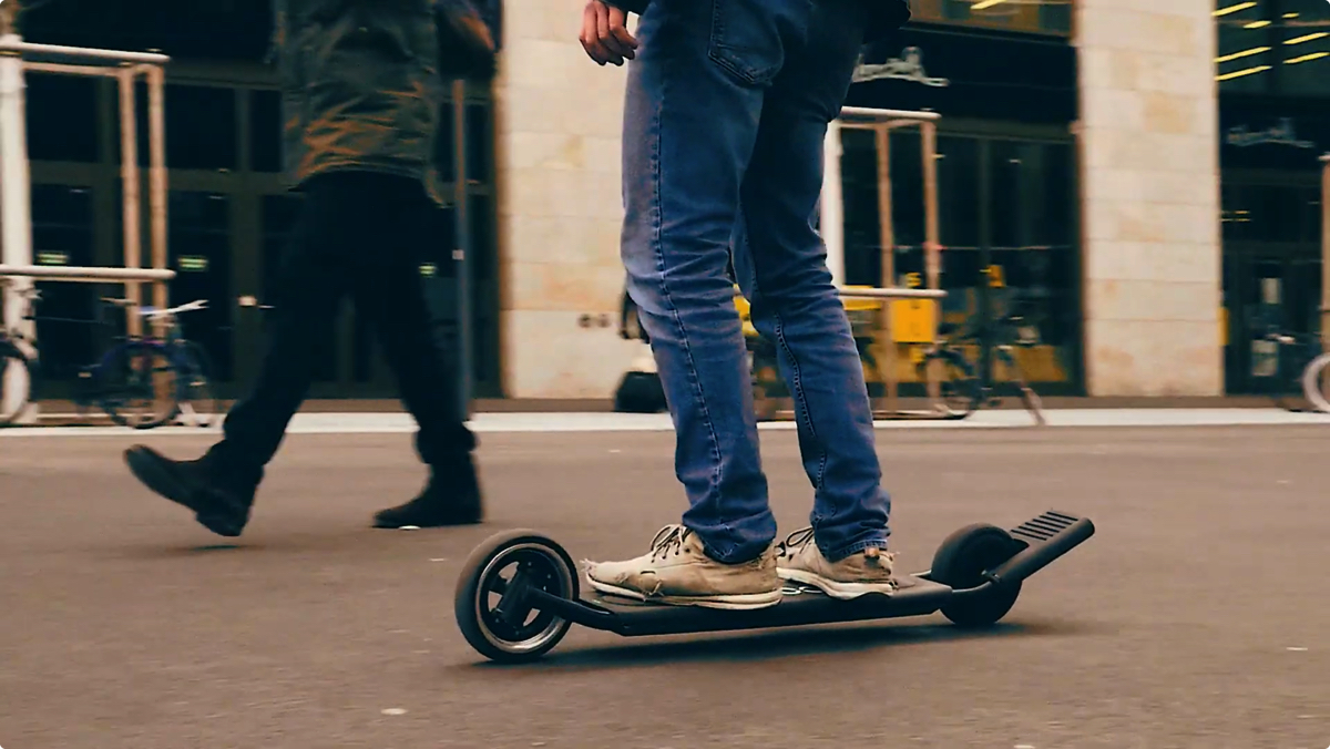 キックボードでについているハンドルをなくしたeスクーター「ROOBSTER」。シンプルな操作性で子どもから大人まで誰でもカンタンに運転できるモビリティーだ。