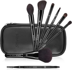 80以上の品質管理項目をパスした確かな品質を誇ります。ブラシの毛は、天然毛に劣らないなめらかさを持つタクロン100%です。耐久性があり、メイクブラシクリーナーを使ったこまめなお手入れが可能。天然木でセンスあるデザインの持ち手も魅力です。レザー風の上質な黒ポーチ付きで、旅行やお出かけの時もスマートに持ち運べます。