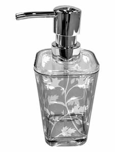 単調な洗面台をおしゃれに演出する、植物モチーフのシルエットがデザインされたボトルです。