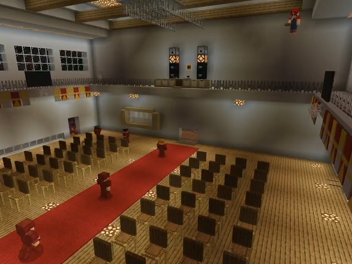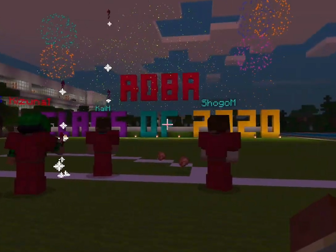 自由自在に建築のできるゲーム「マインクラフト」で、校舎や体育館を再現し、高校3年生、12名の門出を祝った。
