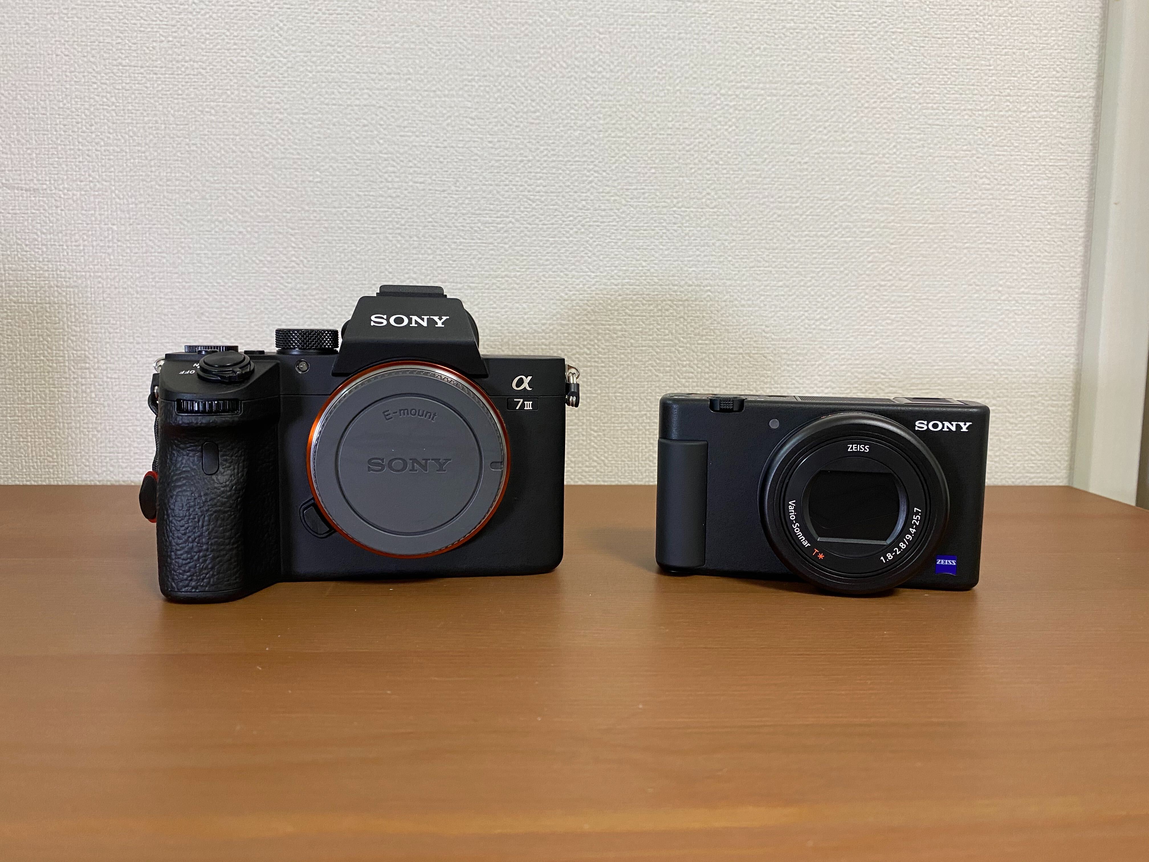 ポケットにすっぽり収まる手のひらサイズで、重さは約294グラムと、iPhoneより少し重たいくらい。フルサイズカメラ「α7ⅲ」と比較してもこの小ささ。