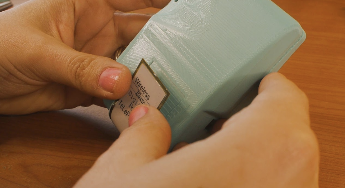 そして「Rotary Cell Phone」は見た目はかなりアナログだが、使われている技術も古いというわけではない。背面には婉曲した電子ペーパーディスプレイが設置されており、不在着信などの定型文が表示されるしくみ。