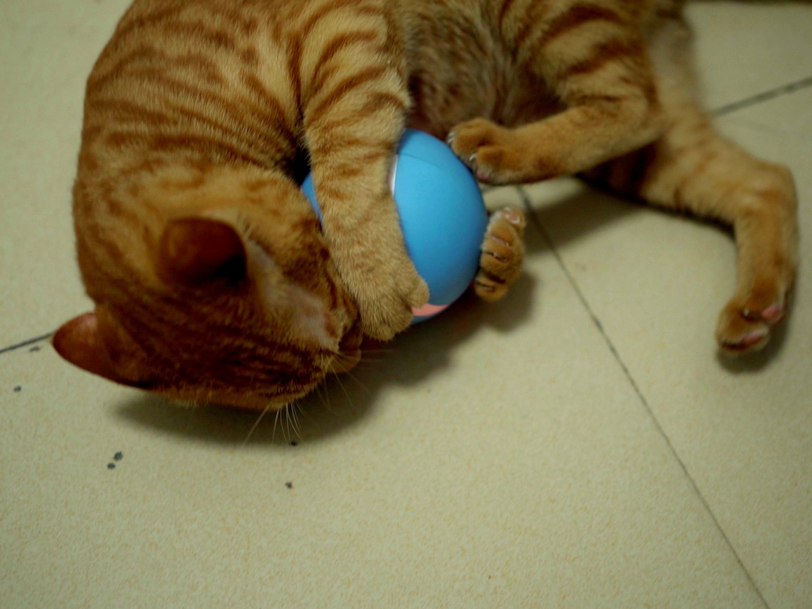 赤、青、緑のライトを発しながら動いたり、急に向きを変えたりするボールをペットは追わずにいられない。