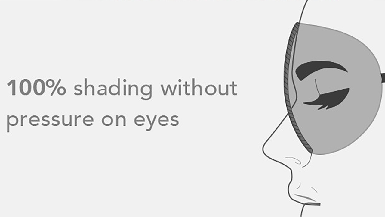 目全体をしっかりと覆うデザインで隙間が生じず、遮光性も完璧。2サイズから選べるうえ、伸縮性のバンドでどんな頭のサイズでもぴったりフィットする。